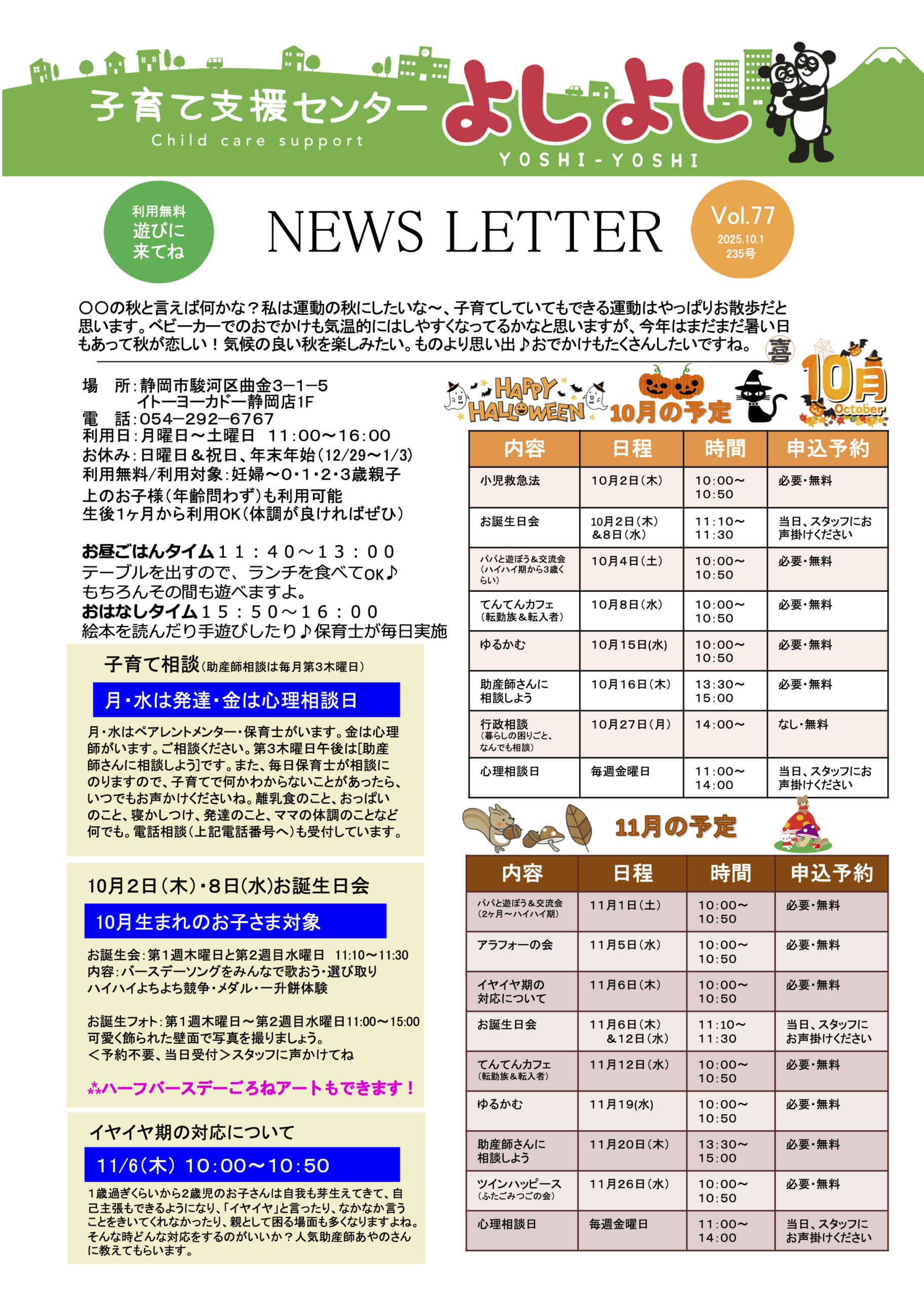 子育て支援センターよしよしでは