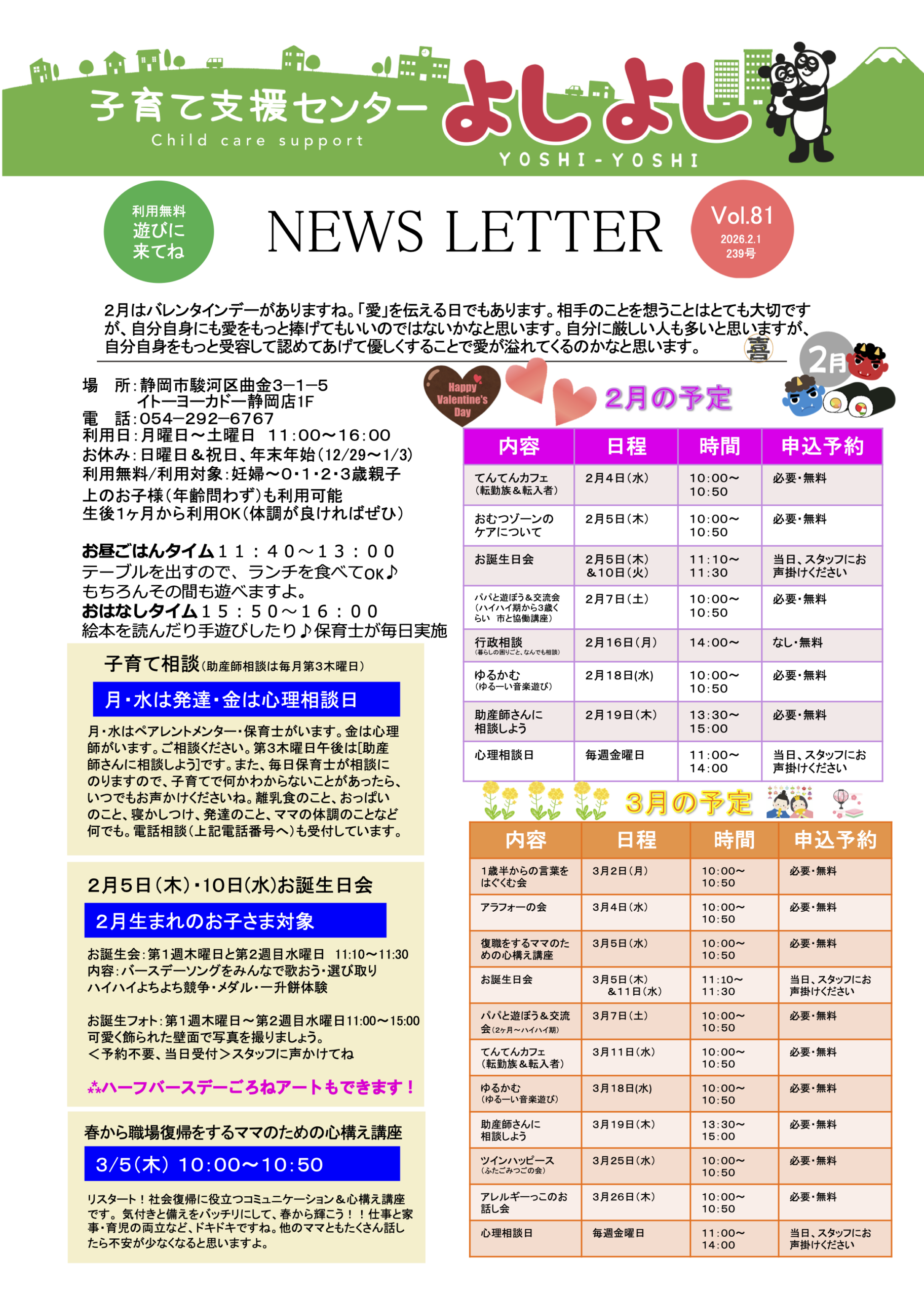 子育て支援センターよしよしでは